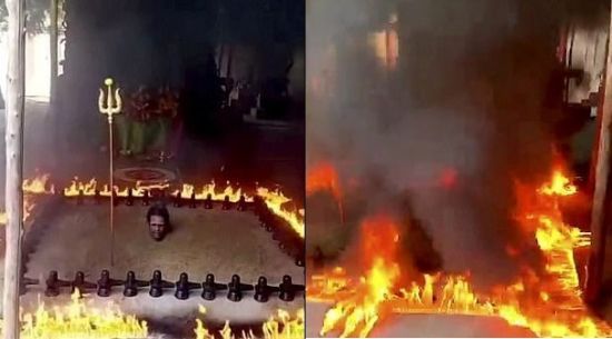 Вокруг мужчины горел огонь.