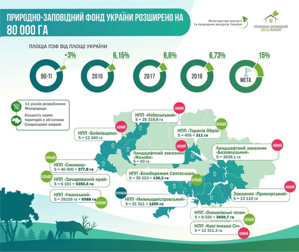 Представители WWF-Украина рекомендуют увеличить заповедные территории, общая площадь которых по состоянию на 1 января составляет лишь 6,77% от площади страны.
