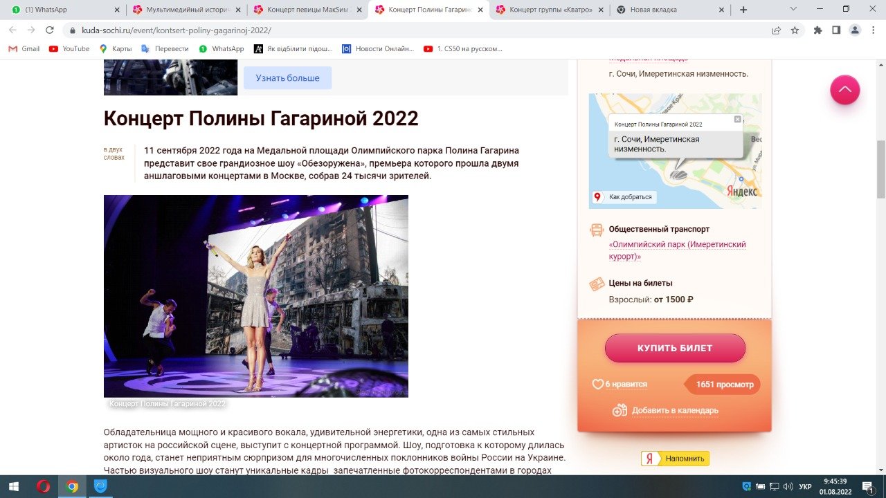 Відомі російські артисти, які раніше підтримували політику путіна, зокрема, Григорій Лєпс, група «Любе», Поліна Гагаріна анонсували концерти з закликами «проти війни в Україні»