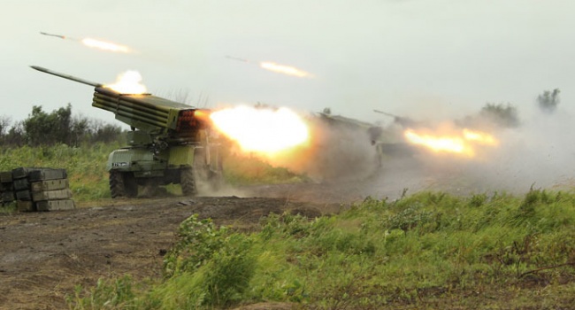 Росйсько-терористичн вйська минуло ноч вдкрили масований вогонь з реактивних систем залпового вогню БМ-21 Град по Галицинвц Донецько област. Даний населений пункт знаходиться на вдстан не менше 15 клометрв вн лн розмежування.