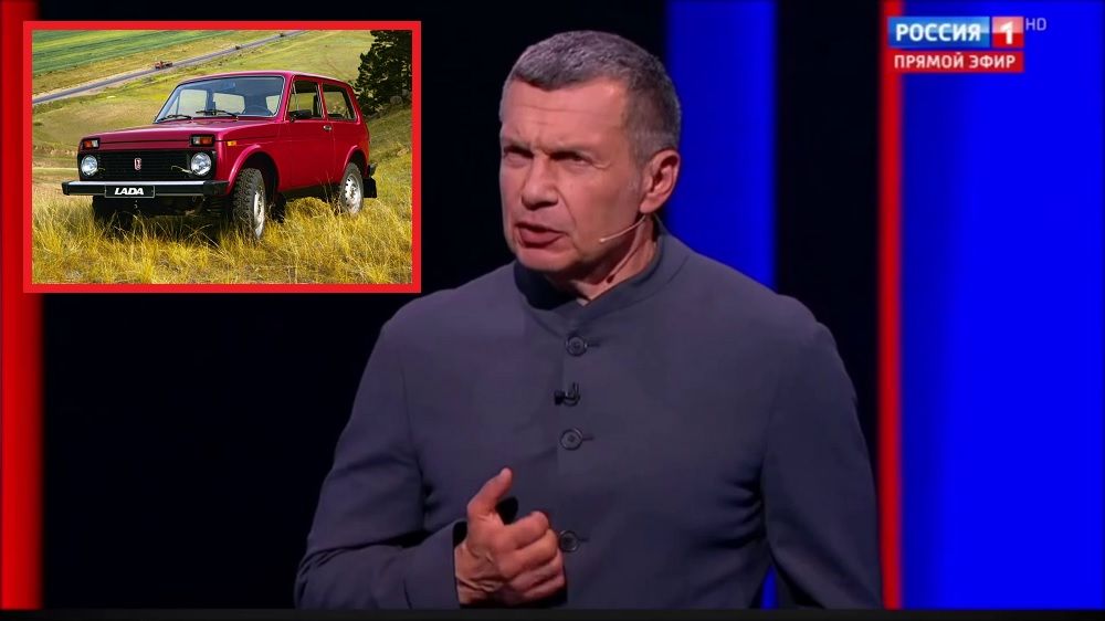 Российский пропагандист Владимир Соловьев возмущен прекращением выпуска российской полноприводной "Нивы", производство которой загнулось из-за санкций Запада.