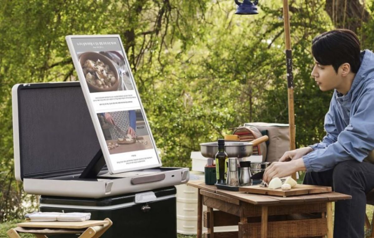 Это портативный 27-дюймовый монитор, который переносится в чемодане – и это часть самого монитора.