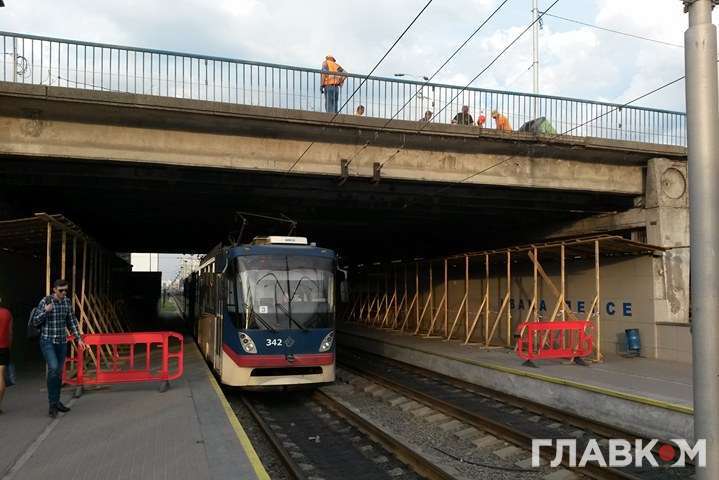 Каміння зі шляхопроводу сиплеться на зупинку громадського транспорту