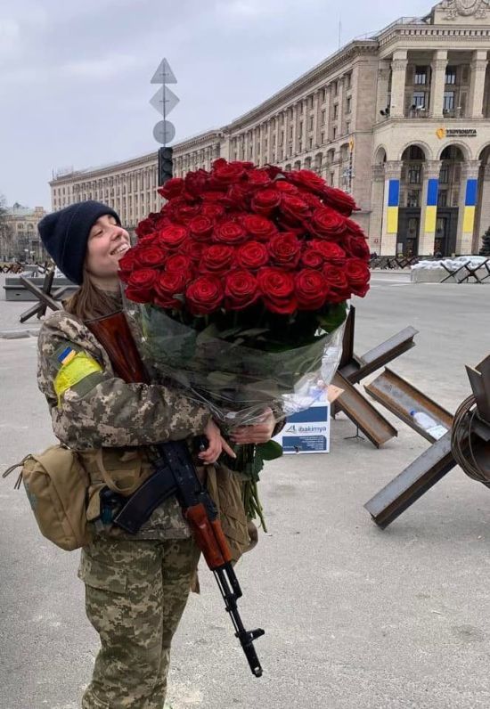 С автоматом и букетом цветов: украинская защитница показала фото из Киева