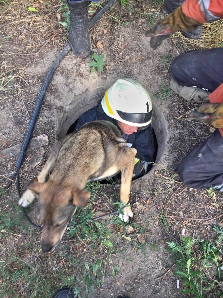 Спасатели с помощью выдвижной лестницы и спасательной веревки вытащили собаку из люка 0564.ua »