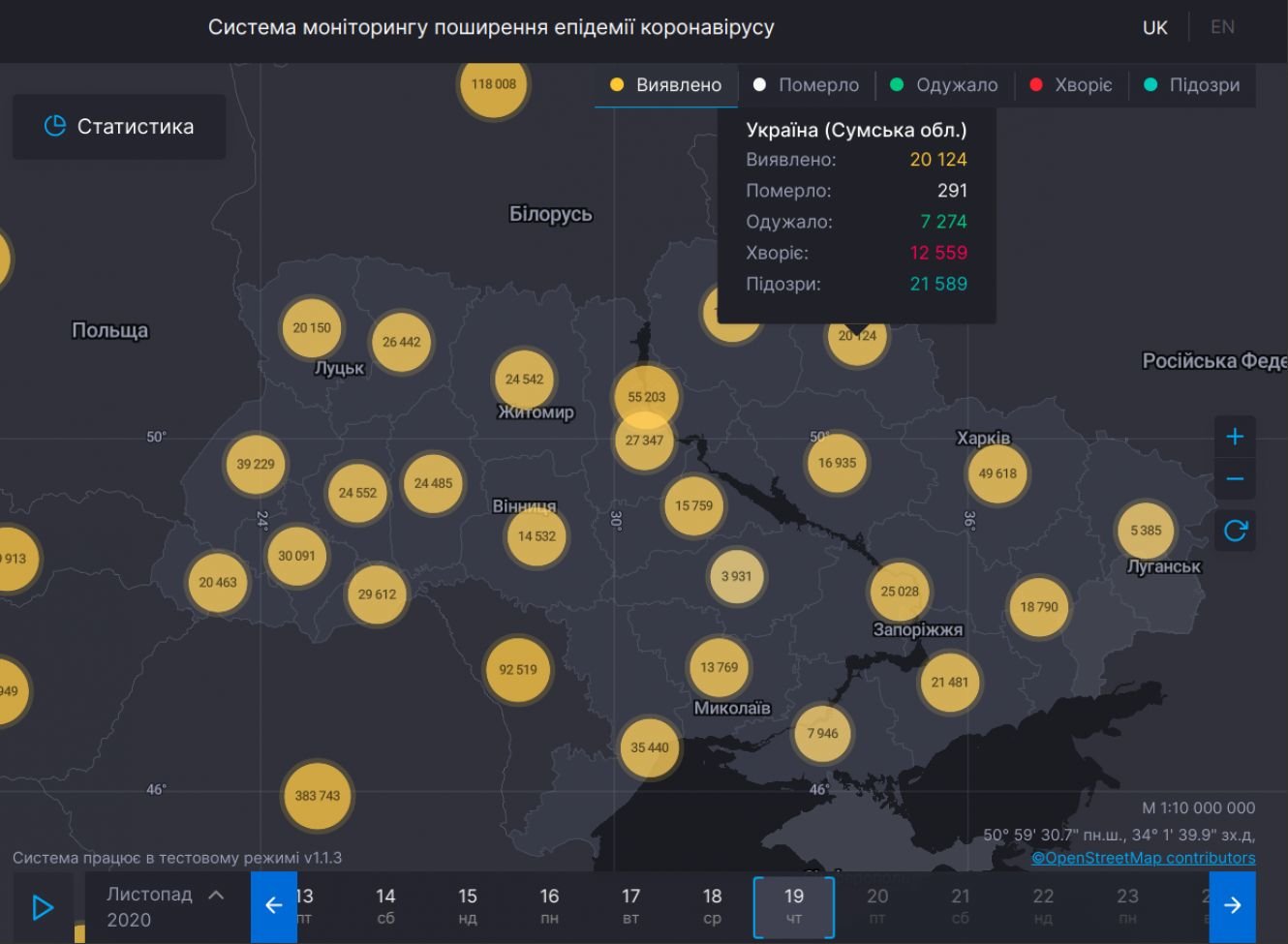Про це сьогодні, 19 листопада, повідомляє система моніторингу поширення коронавірусу від РНБО України 0542.ua »
