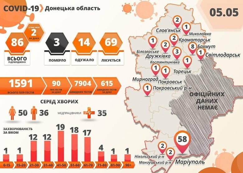 Всего с начала карантина в Донецкой области зафиксировано 86 случаев коронавирусной болезни 62.ua »