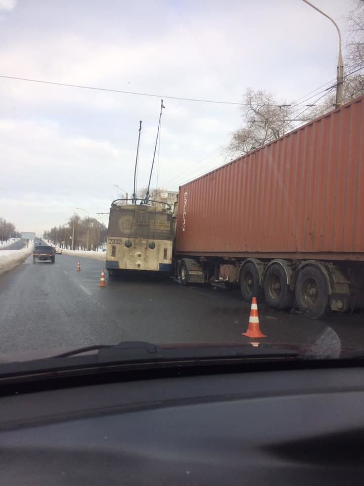 Водитель общественного транспорта не рассчитал расстояние и подрезал припаркованную фуру 057.ua »