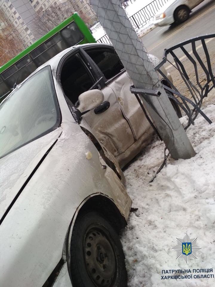 Водитель не смог справиться с управлением и въехал в электрический столб 057.ua »