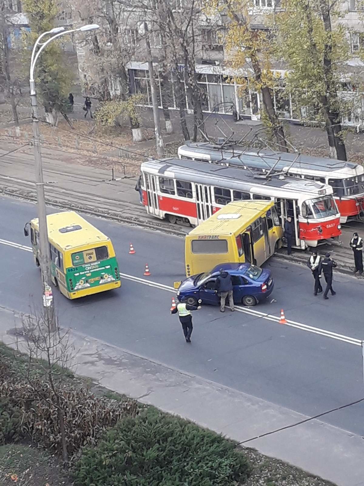 В Киеве маршрутка с пассажирами на полной скорости врезалась в столб, есть пострадавшие. apostrophe.com.ua »