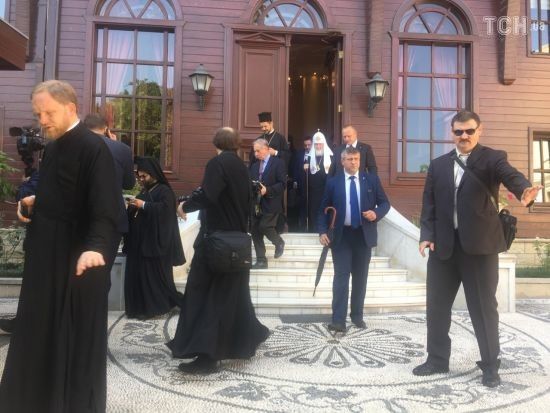 От украинских журналистов Кирилла тщательно охраняла многочисленная охрана. ru.tsn.ua »