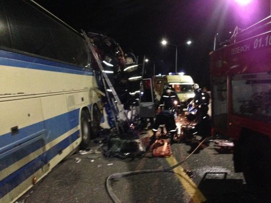 У попавшего в аварию микроавтобуса были номера Донецкой области, но гражданство погибших не сообщается. k.img.com.ua »