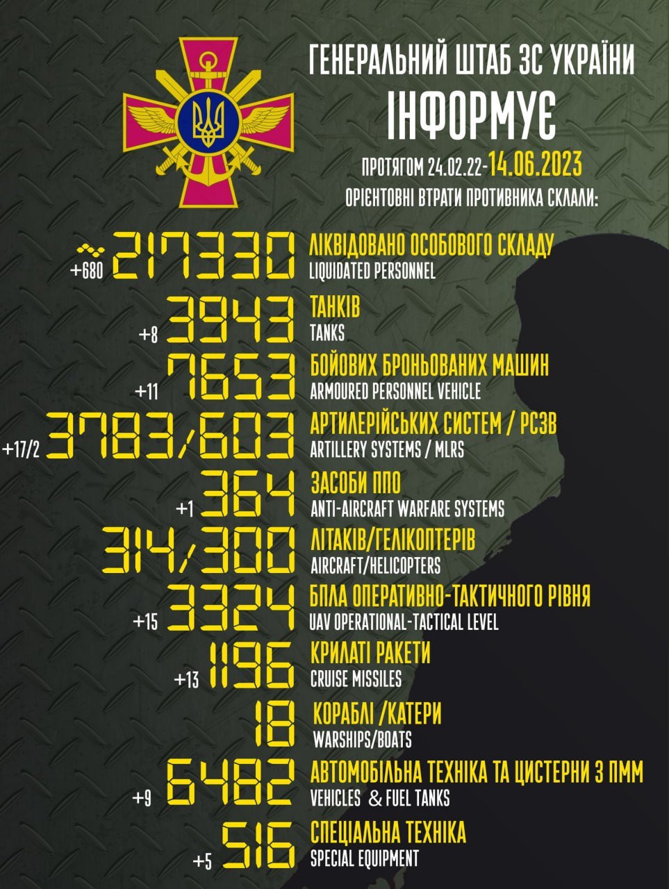 КИЇВ. 20 червня. УНН. На Таврійському напрямку за останню добу втрати росіян вбитими та пораненими склали понад п’ять рот. Знищено та пошкоджено 46 одиниць військової техніки противника. unn.com.ua »