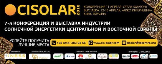 С 11 по 13 апреля 2018 г. в выставочном центре "АККО Интернешнл" (Киев) пройдет самое масштабное отраслевое бизнес-событие в регионе, посвященное индустрии солнечной энергетики – 7-ая Международная Конференция и Выставка Солнечной Энергетики в Центральной и Восточной Европе, Cisolar 2018. ru.tsn.ua »