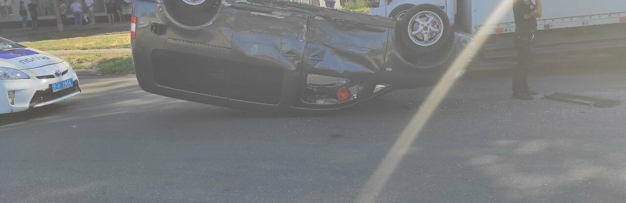 на перекрестке Каширского шоссе и улицы Прогрессивной в Запорожье - перевернулась машина. Пострадал водитель и три девочки. 061.ua »