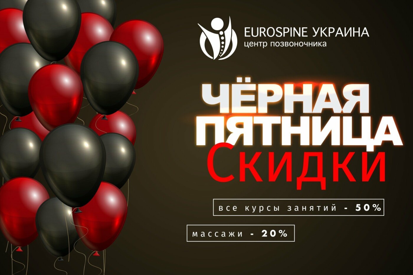 Черная Пятница в Центре позвоночника "Eurospine"!!! -20% на массажи и -50 на лечебные занятия!!!