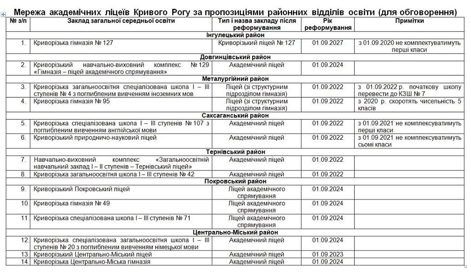 По информации Людмилы Бурман, до начала 2020 года районные отделы образования предоставили департаменту образование и науки горсовета свои предложения по формированию сети академических лицеев. 0564.ua »