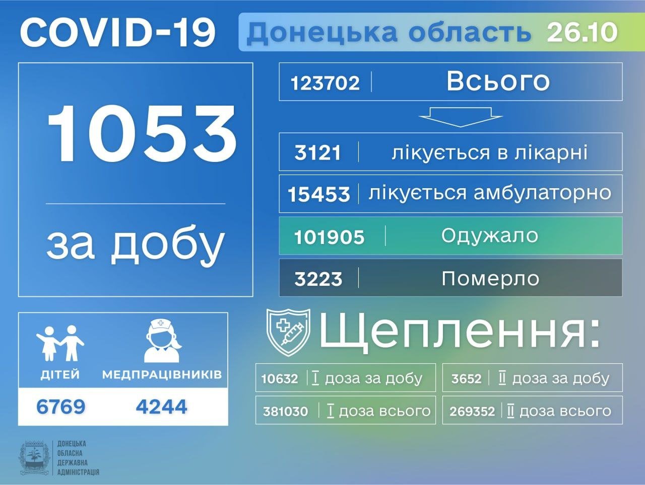 На Донетчине за сутки еще 1053 человек заболели COVID-19