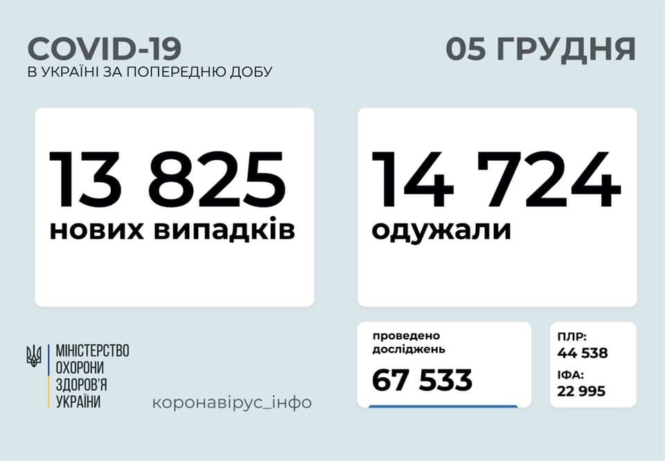 В Украине 13825 новых случаев коронавируса, в Одесской области - 1015