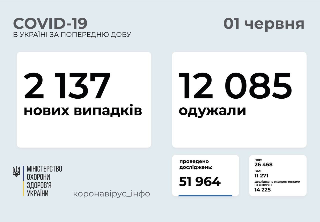 За сутки COVID-19 заболели еще 2137 украинцев