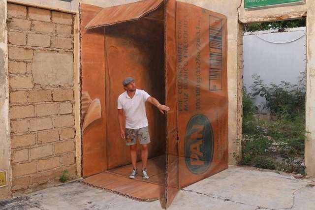 Португальский художник Серхио Одейт создает на обшарпанных углах и стенах удивительные 3D-рисунки. Его работы настолько реалистичны, что под определенным углом кажутся "живыми". apostrophe.com.ua »