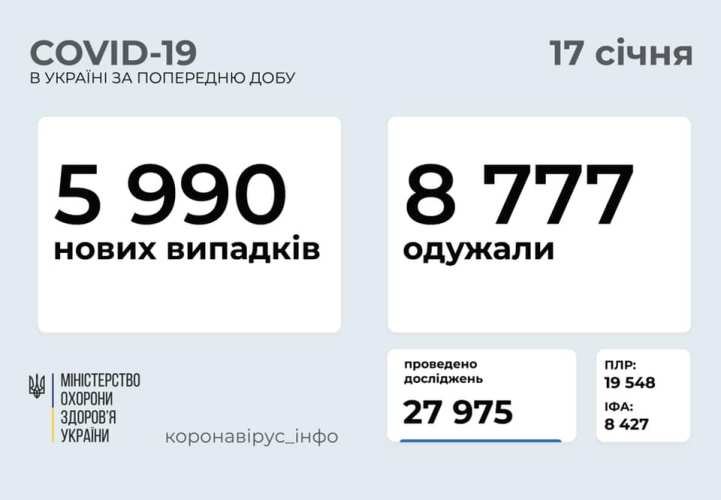 КИЕВ. 17 января. УНН. В Украине по состоянию на 9 часов 17 января зафиксировано уже 1,16 млн случаев коронавирусной болезни COVID-19, суточный прирост, за 16 января - 5 990. При этом с начала недели в сутки выздоравливает больше людей, чем заболело. unn.com.ua »
