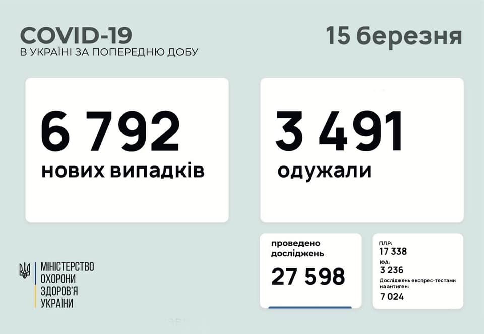 В Украине 6792 новых случаев коронавируса, в Одесской области - 407