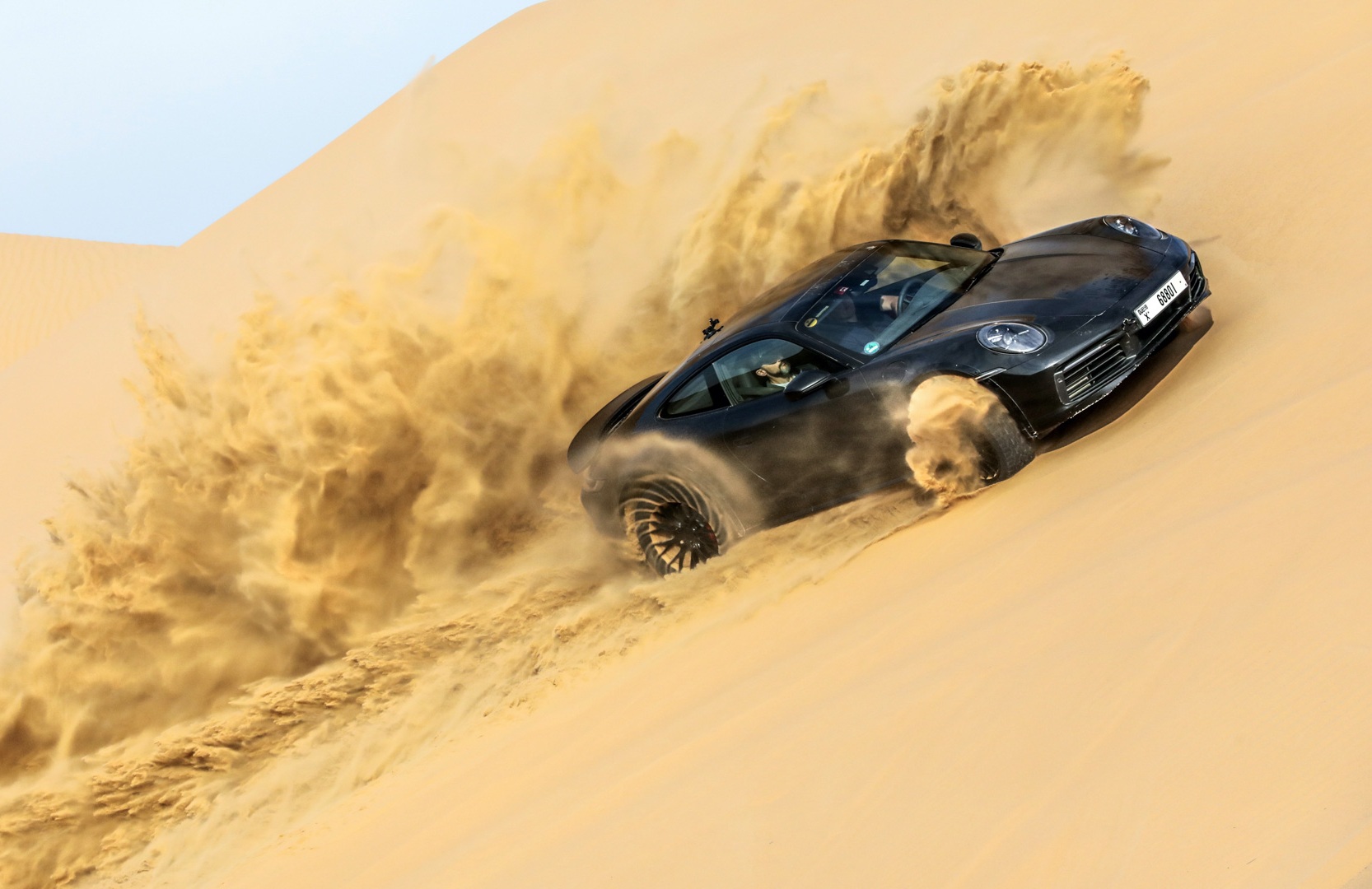 Porsche 911 Dakar отличается от стандартного купе увеличенным клиренсом и пластиковым обвесом. Кроссовер оснащен 3,0-литровым турбомотором и полным приводом. focus.ua »