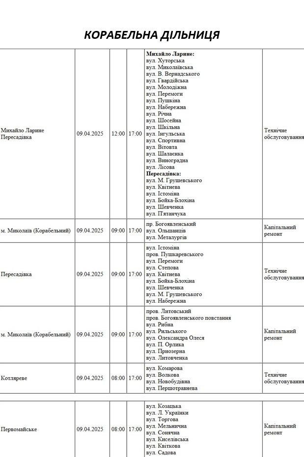 планові відключення світла у Миколаєві на 18 квітня 0512.com.ua »