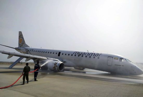 Воздушное судно авиакомпании Myanmar National Airline приземлилось "на брюхо" из-за отказа переднего шасси. k.img.com.ua »