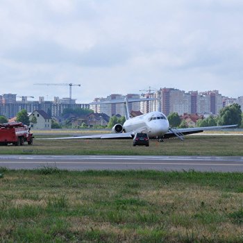 Из-за ветра и дождя в столице самолет выехал за пределы полосы во время тяжелой посадки. ru.tsn.ua »