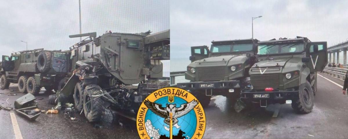 Фото – ГУР Пять бронеавтомобилей российских оккупантов З-СТС “Ахмат” не доехали до зоны боевых действий. О повреждении бронетехники оккупантов во время передвижения по незаконно построенному Крымскому мосту сообщило Главное управление разведки Минобороны. eizvestia.com »