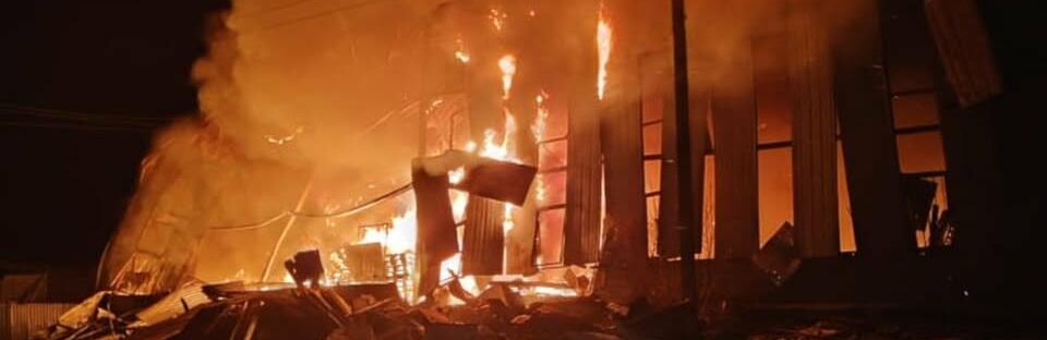 Пожежа в ангарі Слов'янська: рятувальники припинили гасіння пожежі через загрозу повторного удару