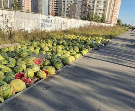 После того, как продажи стали плохими, торговцы решили оставить арбузы прямо под ногами. ru.tsn.ua »