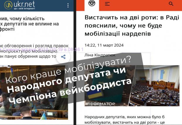 Нардепи ухиляються від фронту, заявляя, що їх хватить лише на 2 роти (!). І вони більш важливі в сесійній залі. І того вони в законі про мобілізацію самі себе бронюють від фронту як і поліцейскіх, прокурорів, суддів, чиновників і тд. facenews.ua »