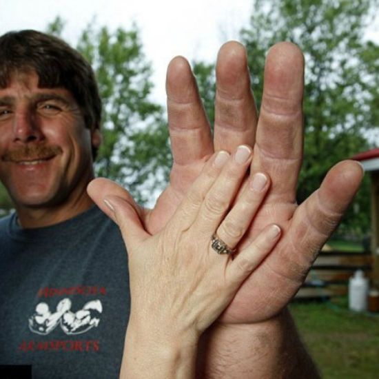 У мужчины необычно большие руки. ru.tsn.ua »