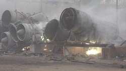 Огнем уничтожены 3 складских ангара, картонная тара, деревянные ящики, алюминиевые фольга и трубки на пл. 1230 кв. м 0642.ua »