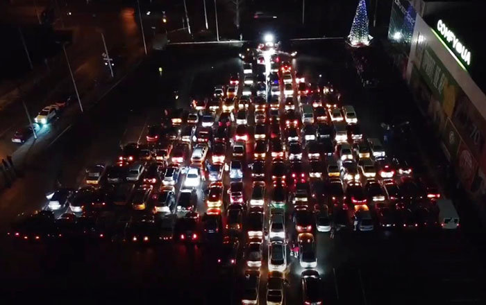 В Харькове автомобилисты устроили флешмоб, выстроив свои авто в виде новогодней елки. apostrophe.com.ua »