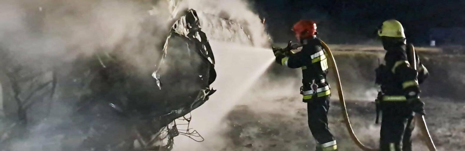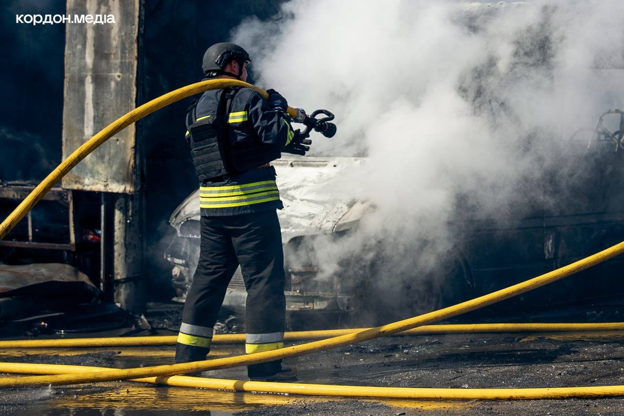 Внаслідок влучань спалахнула пожежа на автостоянці з вантажними автомобілями. 0564.ua »
