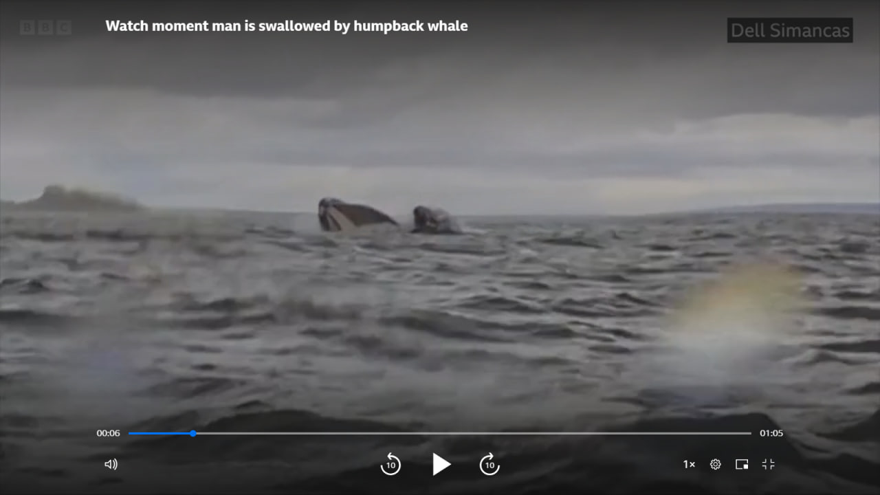 Горбатый кит проглотил байдарку с мужчиной, а потом выплюнул (видео)