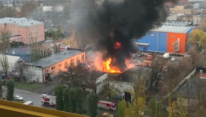 Взрывы и черный дым: в Москве пылает ангар с газовыми баллонами