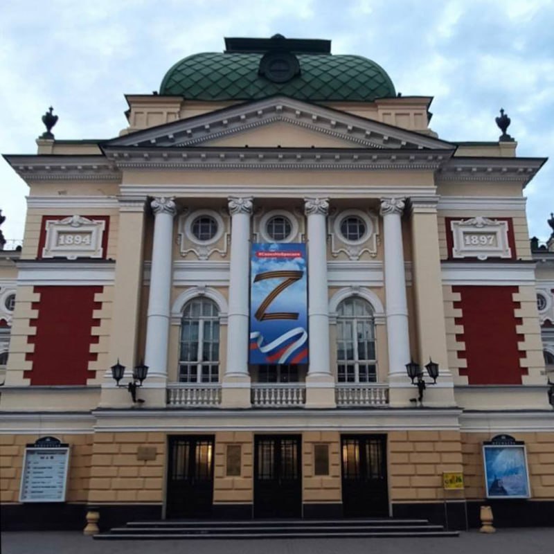 Работники театра дважды анонимно отправляли письма мэрии с требованием убрать баннер с буквой "Z", но их требования остались без ответа. focus.ua »