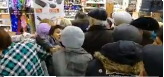 Драка / Скриншот из видео В российском городе Оренбург посетители одного из магазинов устроили перепалку с потасовкой из-за скидок на сушилки для белья. Видео инцидента было опубликовано на странице... glavred.info »