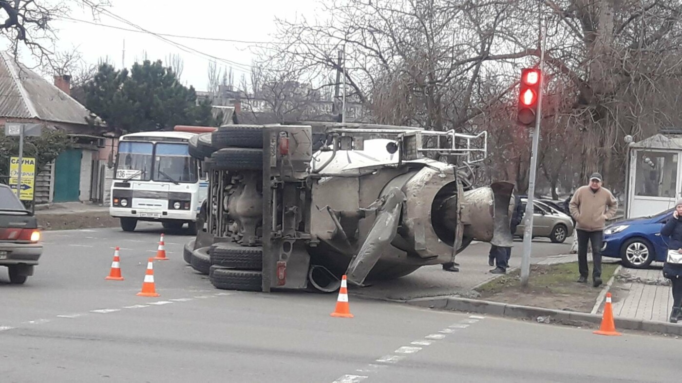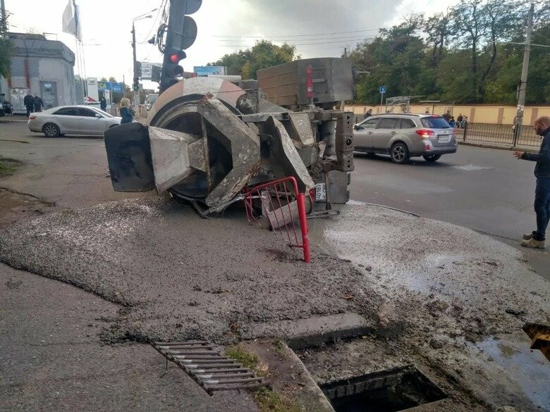 Водитель бетономешалки заметил, что ему на встречу выехал легковой автомобиль. Он попытался избежать столкновения, но не справился с управлением и влетел в столб 0564.ua »
