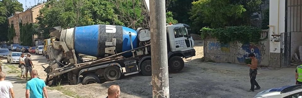 В Киеве бетономешалка провалилась под асфальт, который не выдержал ее веса. apostrophe.com.ua »