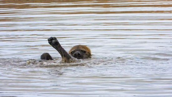 Сеть насмешила беззаботная гиена, плавающая на спине - видео