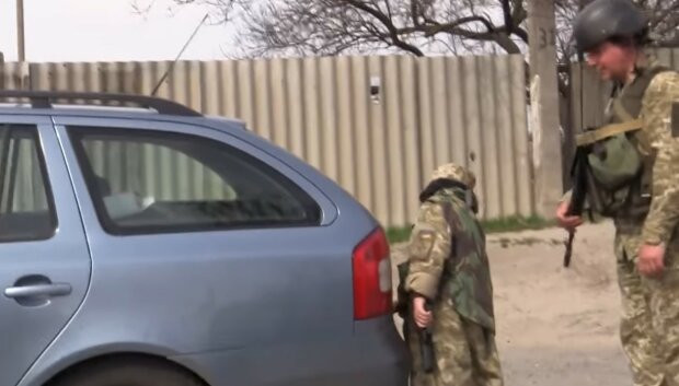 Мальчик наравне с другими военными останавливает автомобили, представляется, и просит показать каждого удостоверения личности. politeka.net »