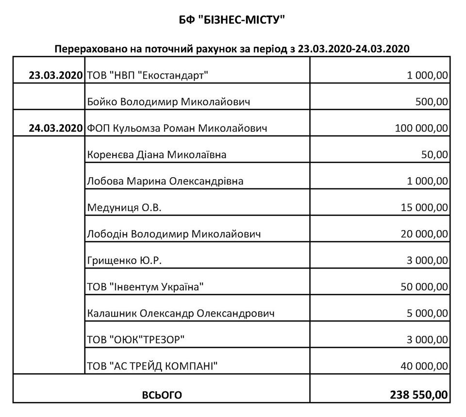 Благодійний фонд «Бізнес - місту» в перший день відкриття рахунку у банку зібрав 238 550 грн 0542.ua »