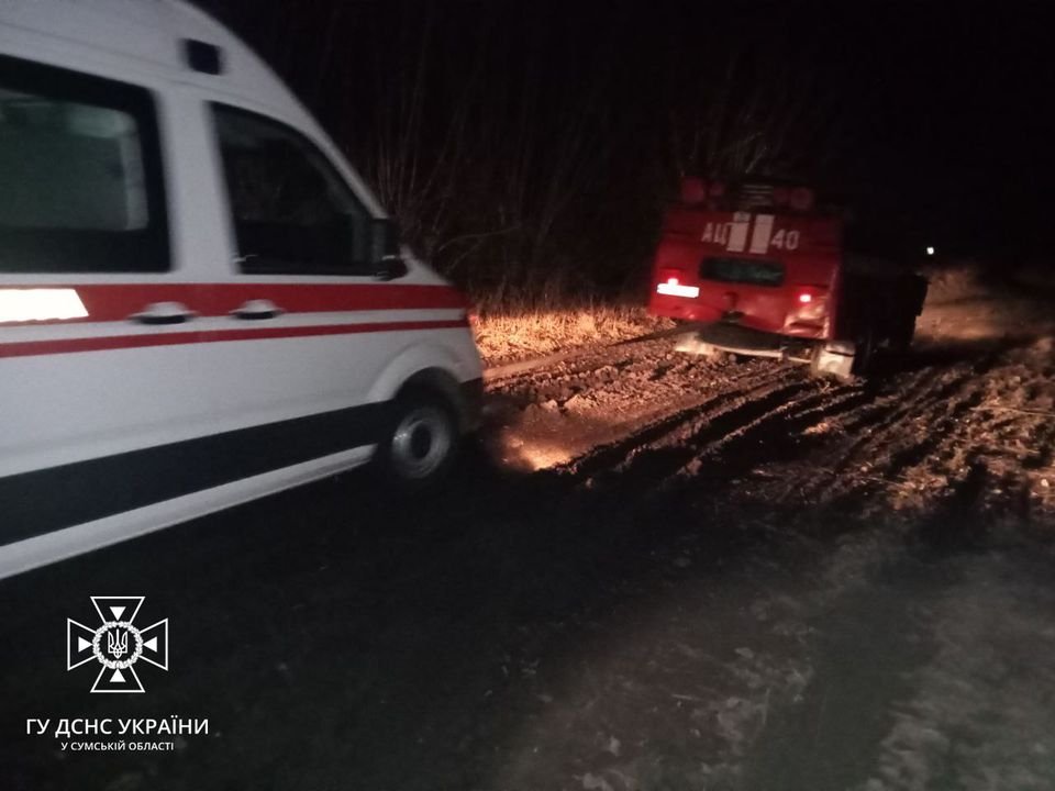 На Сумщині рятувальники п’ять разів допомагали медпрацівникав в буксируванні авто «швидких»
