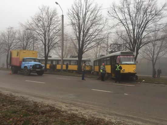 Трамвай «проехал» между деревьев и выехал на дорогу 056.ua »